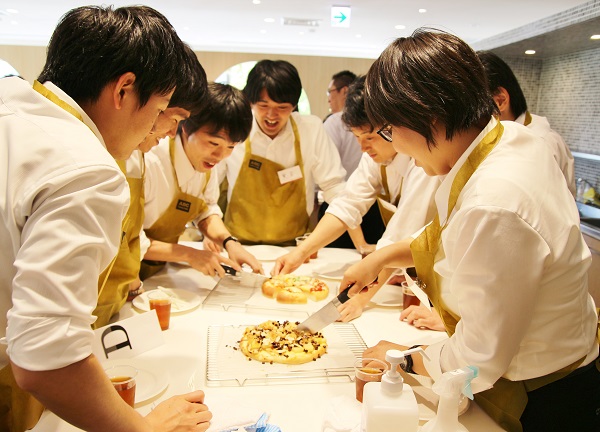 効果的なチームを作るために必要となる「目標設定」、「タイムマネジメント」、「リーダーシップ」等について座学で学び、料理実習を通して即実践することで理解を深める研修。内定者から管理職まで幅広い層を対象に実施しています。料理教室という職場を離れた環境で、楽しみながらチーム一丸となって目標達成を目指す中で、互いの適性や役割責任の理解を促し、職場での効果的なチームビルディングに役立てることができます。