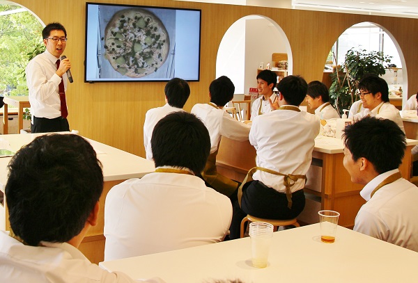 ピザが焼きあがると、早速完成したピザを試食。その後、各チームの代表者が自分たちのピザのコンセプトや、どのように工夫しながらピザ作りに挑んだかを発表し、個性あふれるプレゼンテーションで、教室は歓声と笑顔に包まれました。