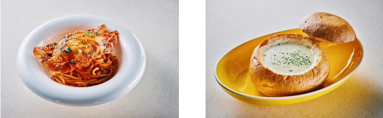 ▲ワタリガニのトマトソースパスタ 1,738円(税込) ▲クラムチャウダー 1,848円(税込)
