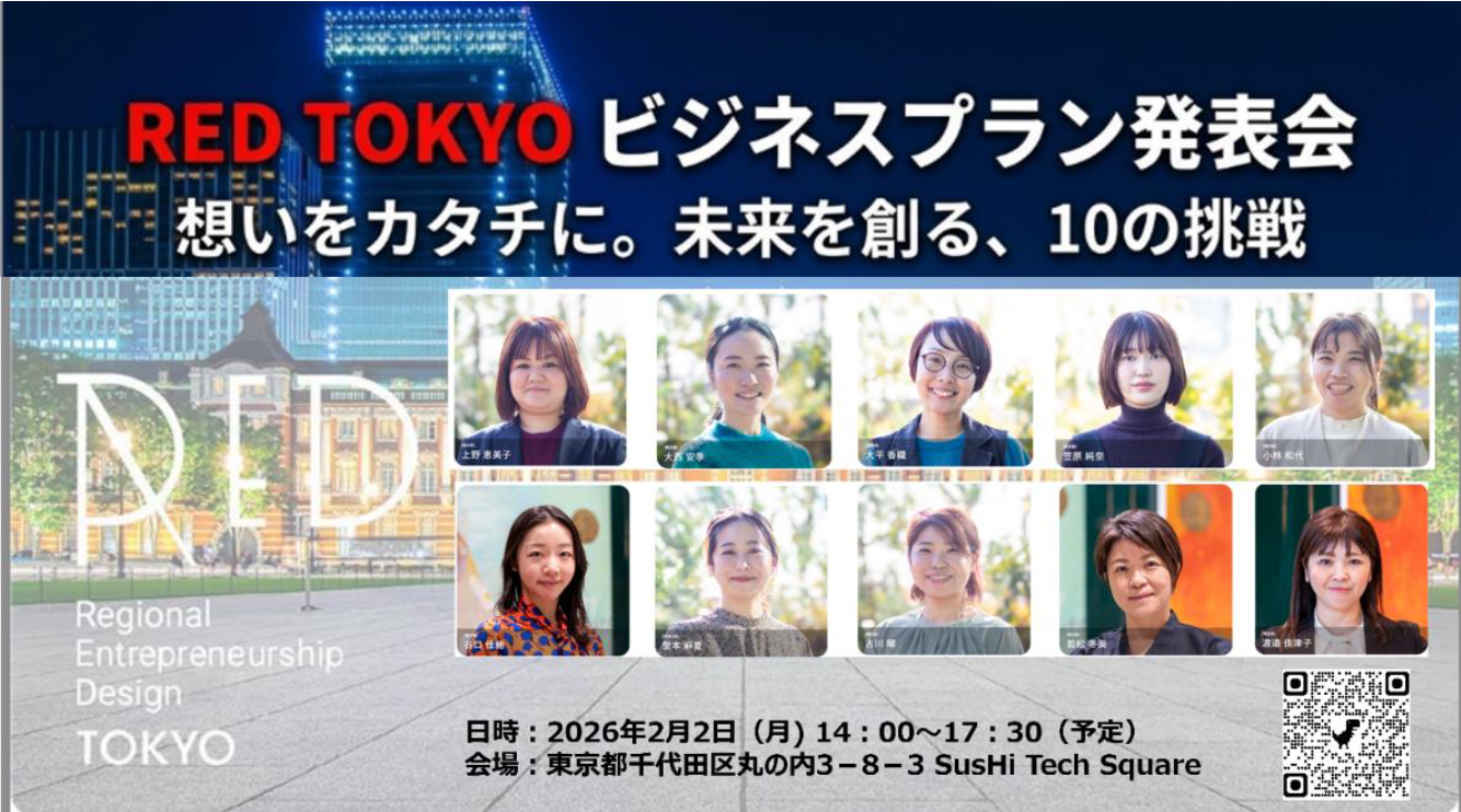 株式会社パソナグループ(本社:東京都千代田区、代表取締役社長CEO 若本博隆)は、経済産業省関東経済産業局から受託・運営する「令和7年度ユニコーン創出支援事業『GIRAFFES JAPAN』(女性アントレプレナーのための地域密着型支援事業)」の一環で、女性起業家と支援者のマッチングイベント『ビジネスプラン発表会 RED TOKYO』を、2026年2月2日(月)にTokyo Innovation Base(東京都千代田区)及びオンラインにて開催いたします。