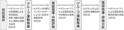 そこで今回ベネフィット・ワンはルネサンスと提携し、運動と食事指導を織り交ぜ、メタボリックシンドローム該当者の生活習慣改善を図る「ハイブリッド保健指導」を開始いたします。 ベネフィット・ワンの健康管理支援サービスとルネサンスの保健指導サービスを組み合わせることで、日常生活の改善点を提案し、メタボリックシンドロームの解消をサポートいたします。運動指導では、日常生活に手軽に取り入れられる活動量アップの方法を教えることで、誰もが無理なく実行でき、効果を得られることができます。 またベネフィット・ワンは、特定保健指導だけでなく、前段階である特定健診の部分においても健康保険組合へのサポートを行っているため、健康づくり全体の施策を通してサポートすることで、計画や実施にかかる全体のコストを削減し、更なる効果を促進いたします。 2010年3月末までに1000名の受診を見込んでおります。