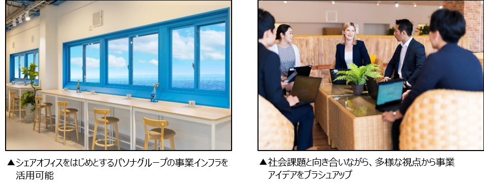 パソナグループは、参加者が起業に向けて事業立案に集中しながら淡路島で生活ができるよう、同社が兵庫県淡路島にて展開するオフィスや施設にて就労環境を提供。また、シェアオフィスや宿泊施設を提供するほか、周遊バス等を含めた交通支援等の生活インフラをサポートします。