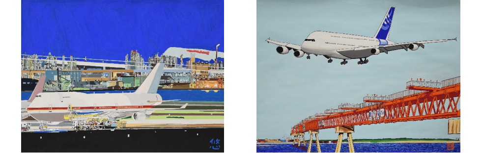 今回は、羽田空港第2ターミナル5階のスカイデッキ南側通路に、パソナハートフルのアーティスト社員が“飛行機”をテーマに描き下ろした作品を展示。障害特性を活かした独自の表現技法によって、羽田空港を発着する飛行機の様々な姿を描いています。